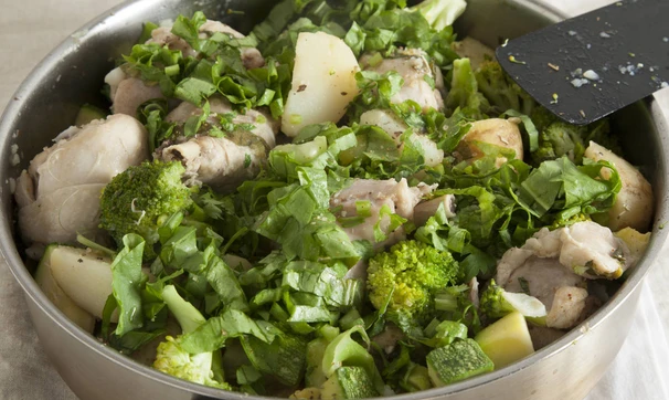 Рагу с курицей и молодыми овощами