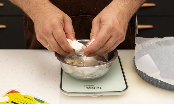 Фету поломайте руками на кусочки.