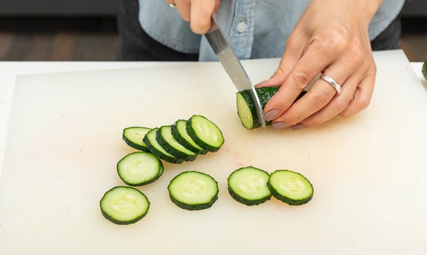 Огурцы нарежьте кружочками, петрушку мелко порубите.