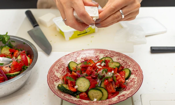 Традиционный болгарский салат из свежих овощей и брынзы, который можно найти в меню ресторанов по всему миру. Хорош как сам по себе с ломтём свежего хлеба, так и в качестве лёгкого гарнира к мясу.