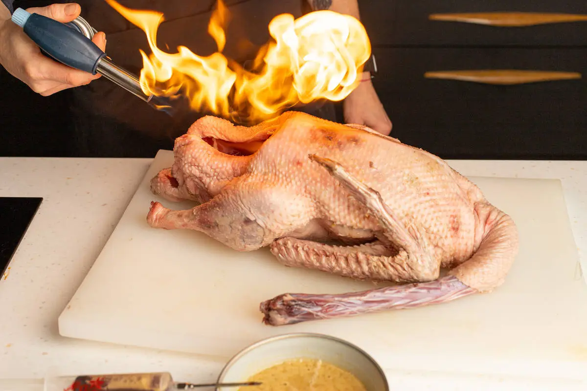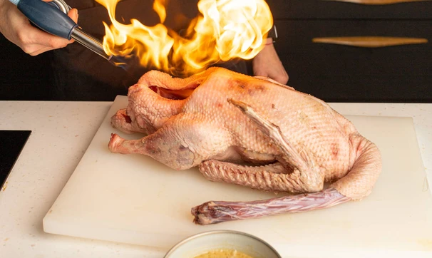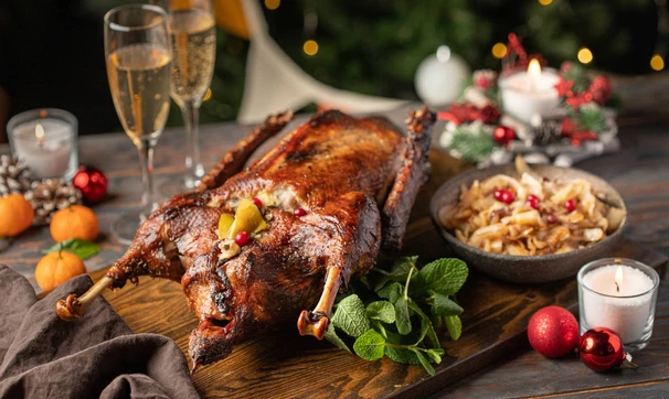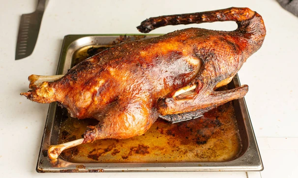 Гусь не терпит спешки и суеты при приготовлении, требует длительной подготовки и медленного запекания. Зато в результате получается по-настоящему роскошное праздничное блюдо. На гарнир мы рекомендуем приготовить тушёную капусту, добавив в неё немного жира от гуся — это классическое и очень вкусное сочетание.