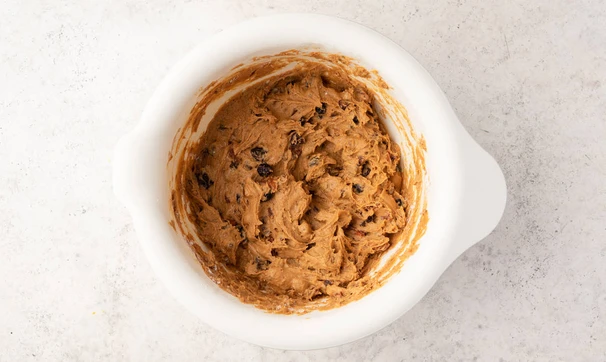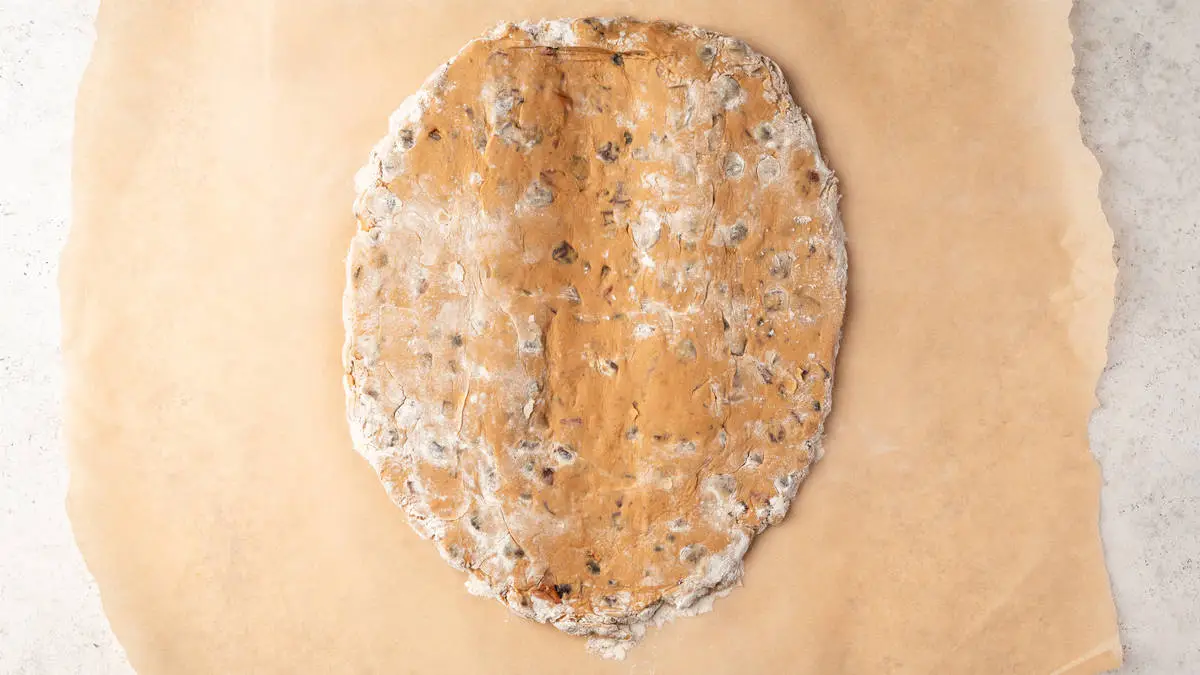 Промните немного середину и сложите одну половину теста на другую, словно закрываете книжку. Выпекайте в разогретой до 170 °C духовке 1,5 часа. Проверяйте готовность зубочисткой.