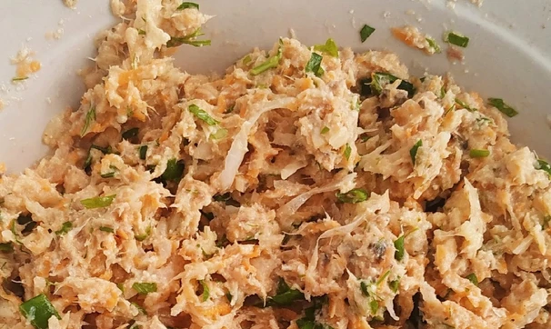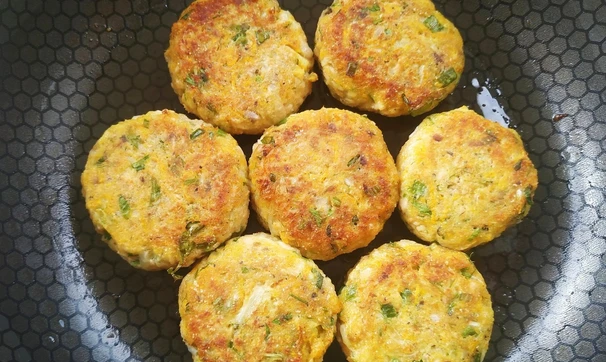 Добавьте к овощам рыбу и остальные ингредиенты, перемешайте и сформуйте котлеты.