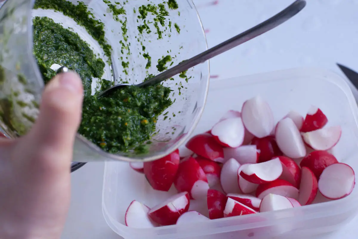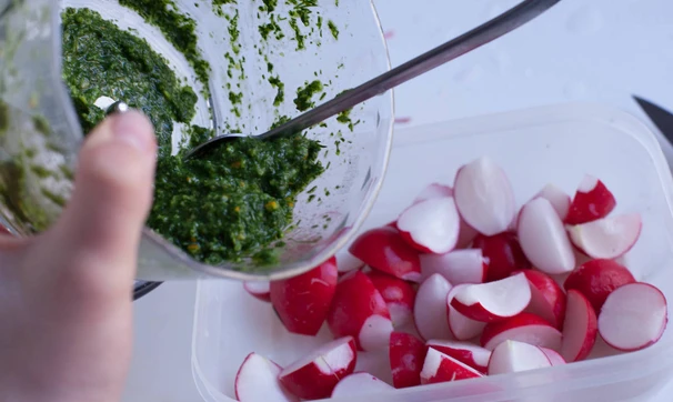 Салат из редиски с укропным песто