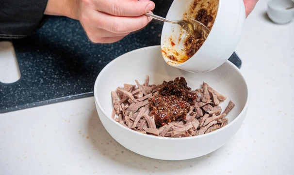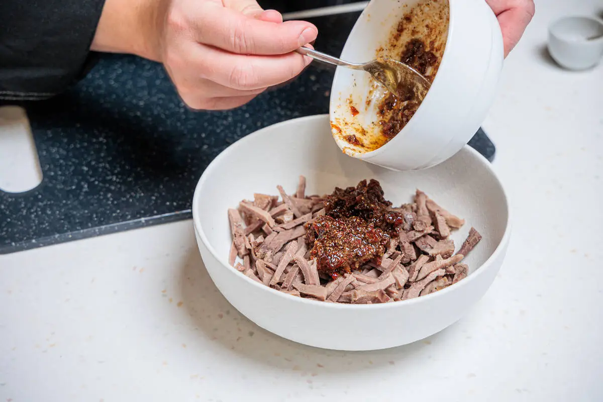 Перемешайте язык с заправкой.
