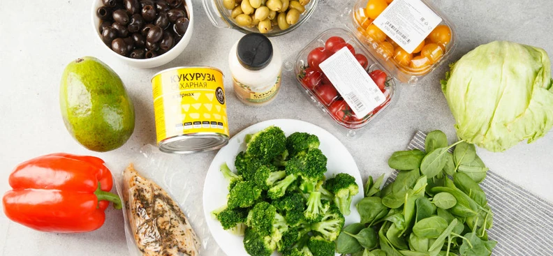 Если верить истории, салат Кобб был придуман в 1937 году владельцем голливудского ресторана Робертом Коббом почти случайно. Сильно проголодавшись вечером, он зашёл на кухню и смешал в тарелке остатки нарезанных овощей, зелени и курицы. Салат так понравился, что вошёл в меню и стал популярен во всей Америке. В классической версии Кобба присутствует жареный бекон, мы же сделаем более лёгкую версию — с перепелиными яйцами, брокколи и авокадо.