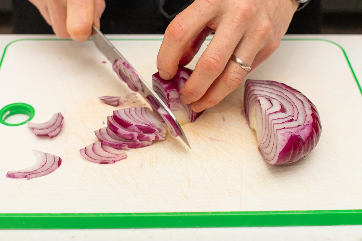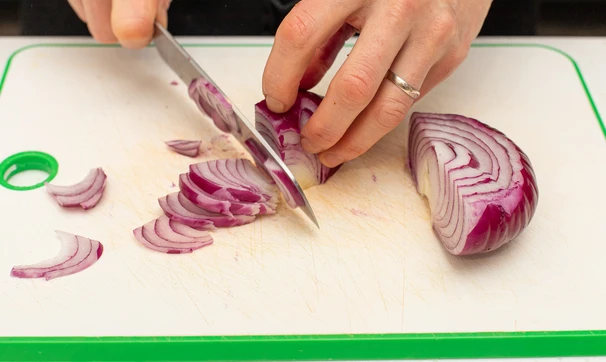 Лук нарежьте тонкими перьями, мелко порубите зелень.