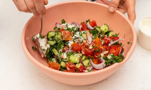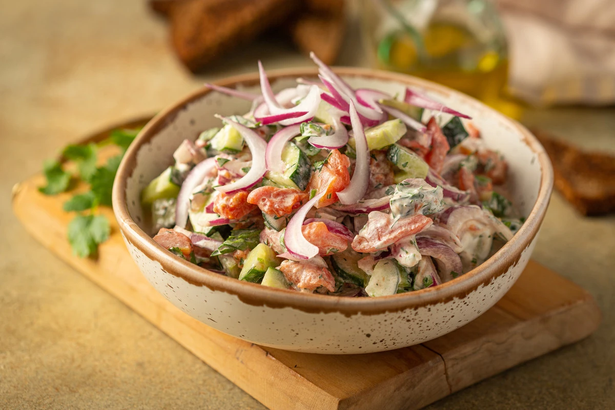 Рецепт «Салат «Литовский» из помидоров, огурцов и лука»
