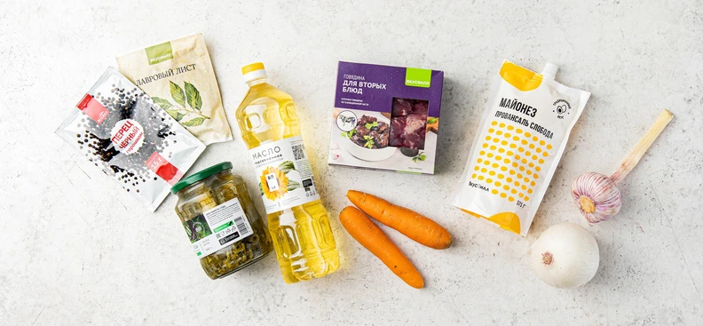 В рецепте используются товары из категорий: Мясо, птица; Консервация; Овощи, фрукты, ягоды, зелень; Масла, соусы, специи, сахар и соль
