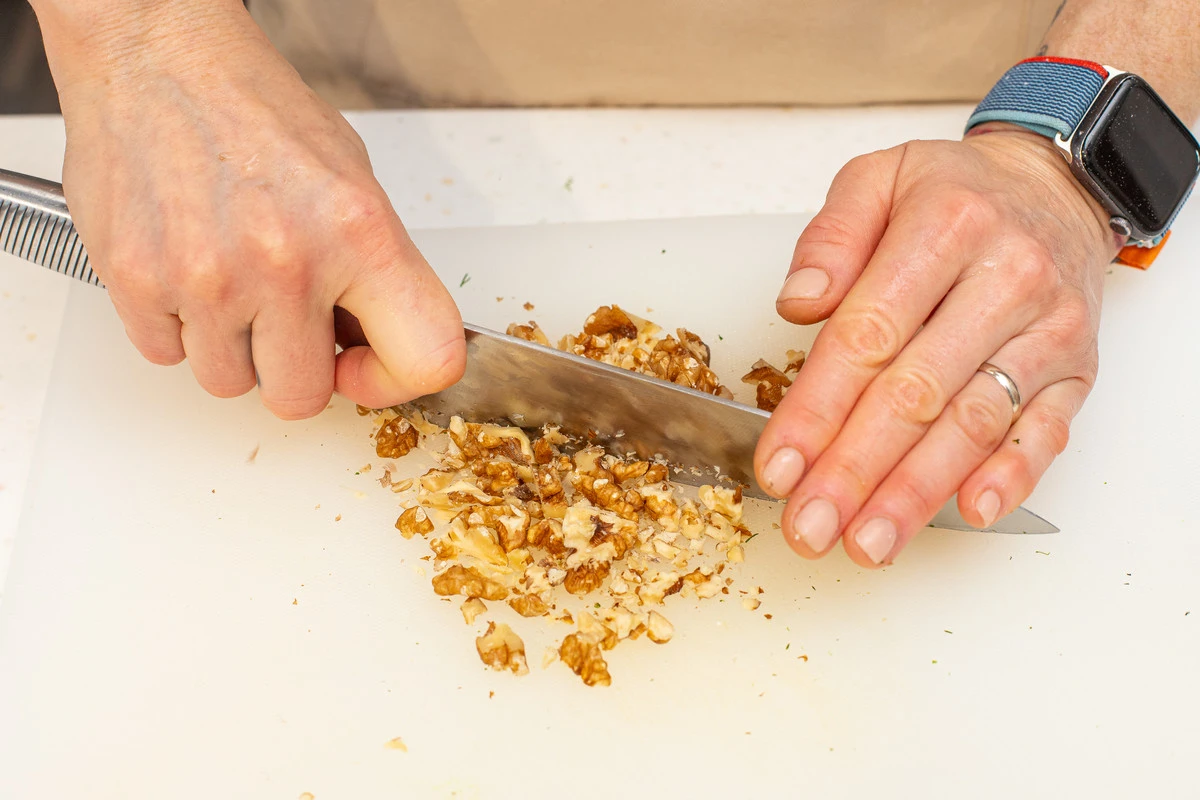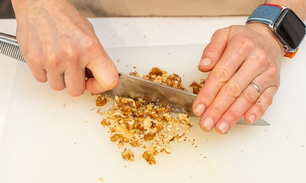 Орехи порубите ножом.