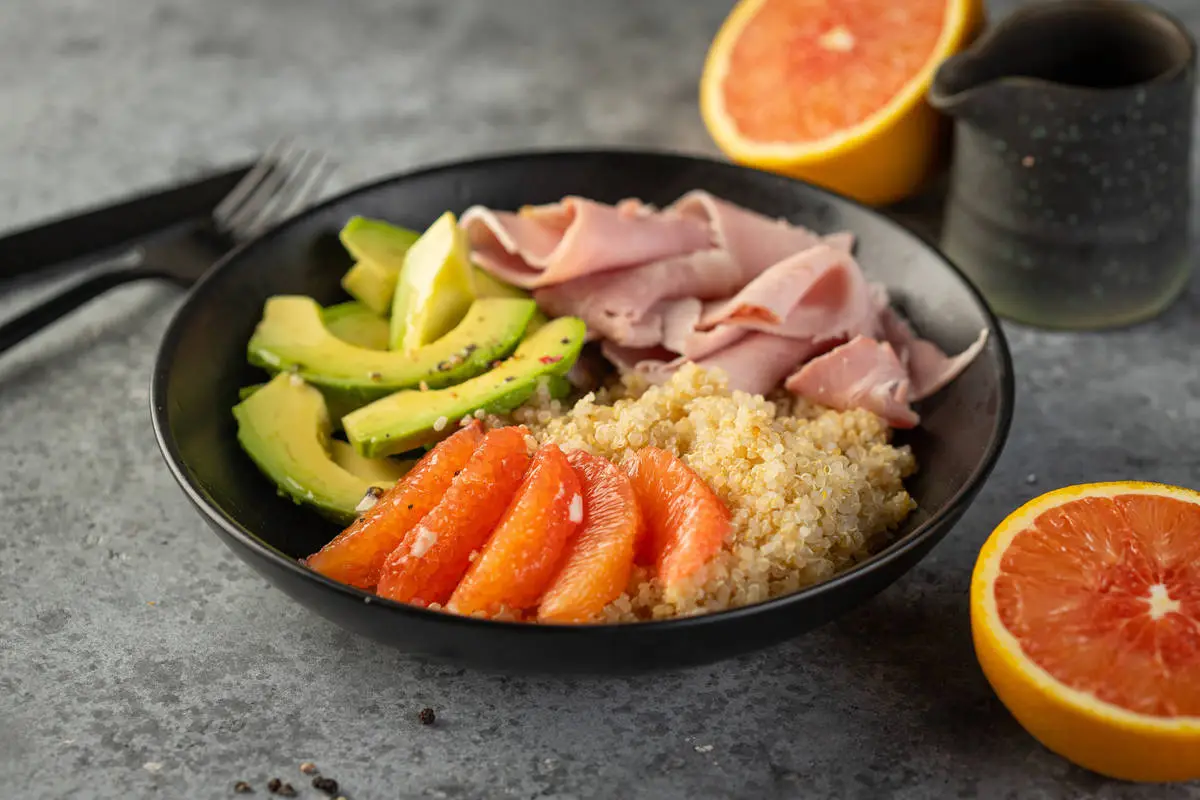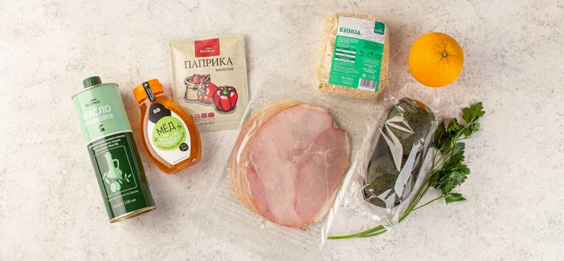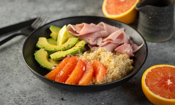 Салат с авокадо, киноа и окороком