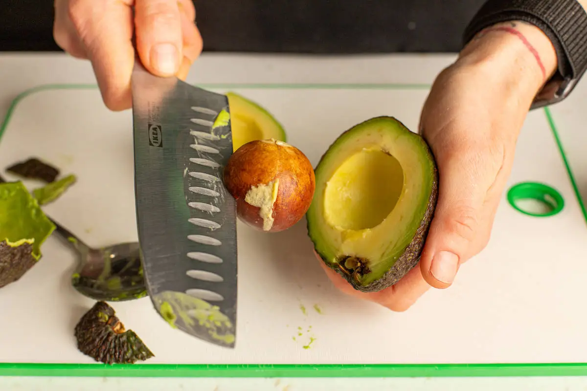 Авокадо очистите от кожуры, удалите косточку. Мякоть нарежьте ломтиками и сразу полейте лимонным соком, чтобы авокадо не темнело.