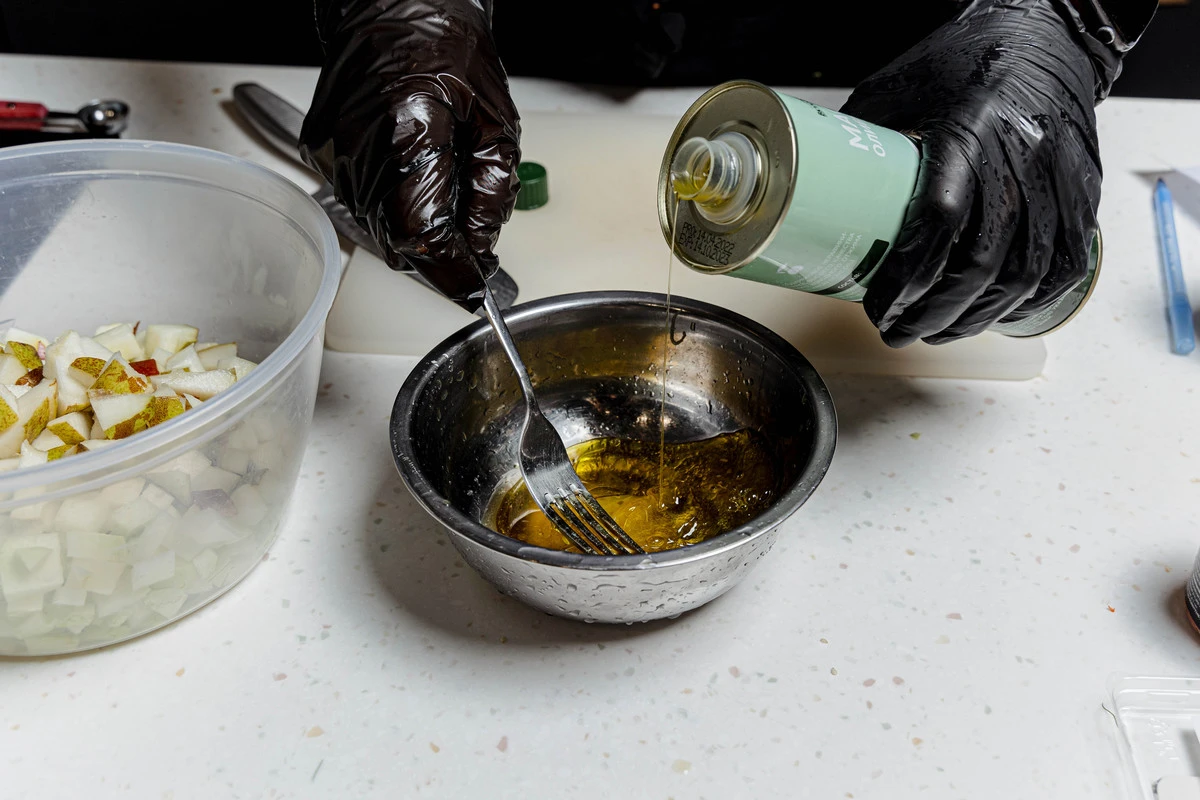 Салат с сыром, грушей и кольраби