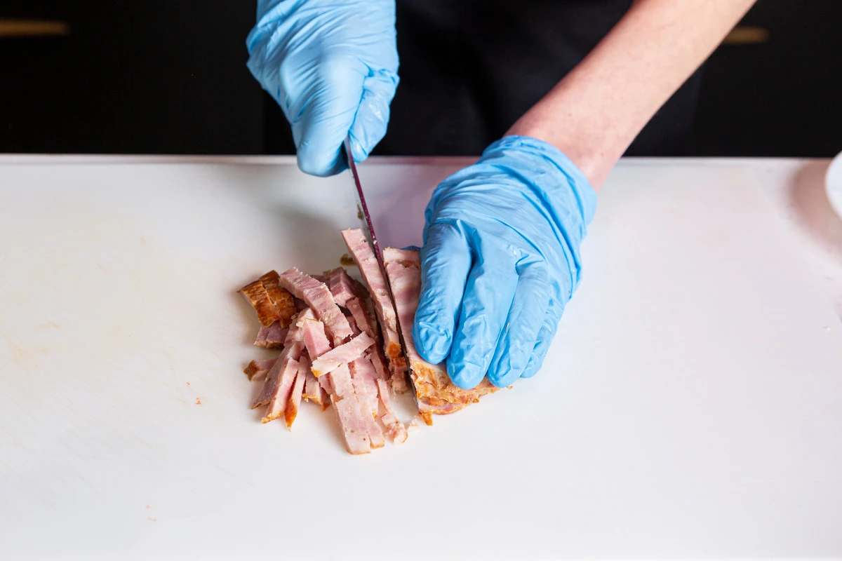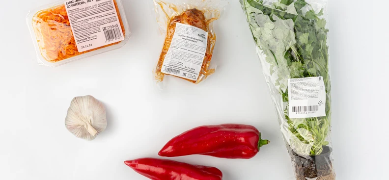 В рецепте используются товары из категорий: Масла, соусы, специи, сахар и соль; Колбаса, сосиски, деликатесы; Овощи, фрукты, ягоды, зелень; Готовая еда
