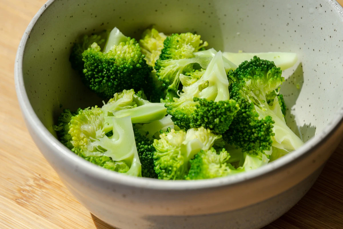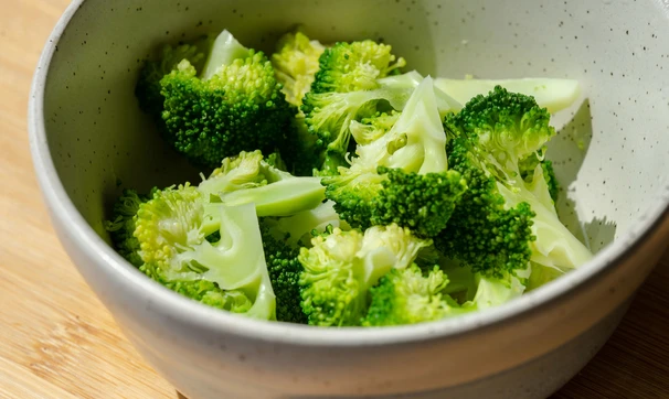 Брокколи нарежьте на небольшие соцветия, сложите в миску. Добавьте немного воды и поставьте в микроволновку на 2 минуты.