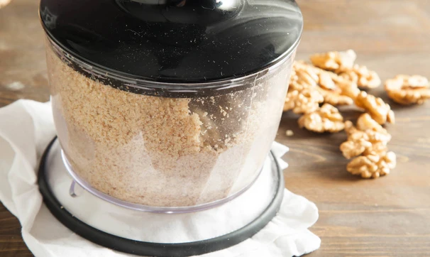 Грецкие орехи измельчите в блендере до однородности.