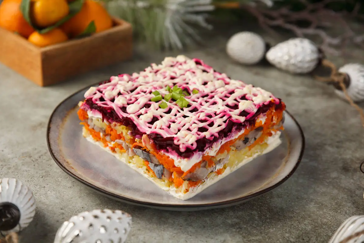 Классический рецепт селёдки под шубой – любимого новогоднего салата. По желанию можно добавлять яблоко для свежести или лук, если любите. Если хотите добавить лук, нарежьте его очень мелко и ошпарьте кипятком, чтобы удалить горечь.