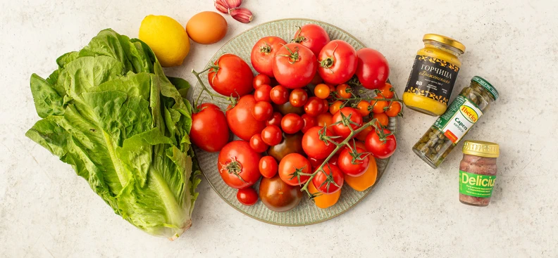 Рецепт «Сет помидоров с домашним соусом «Цезарь»»