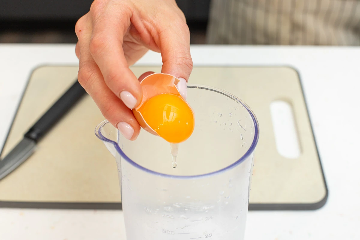 За 1 час до приготовления уберите растительное масло в морозилку. Отделите желток от белка, белок не понадобится.