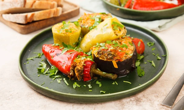 Время радовать себя и близких сочными летними блюдами. Например, этой вегетарианской версией фаршированных овощей, которая может выступить в качестве самостоятельного блюда, но также станет и отличным гарниром.