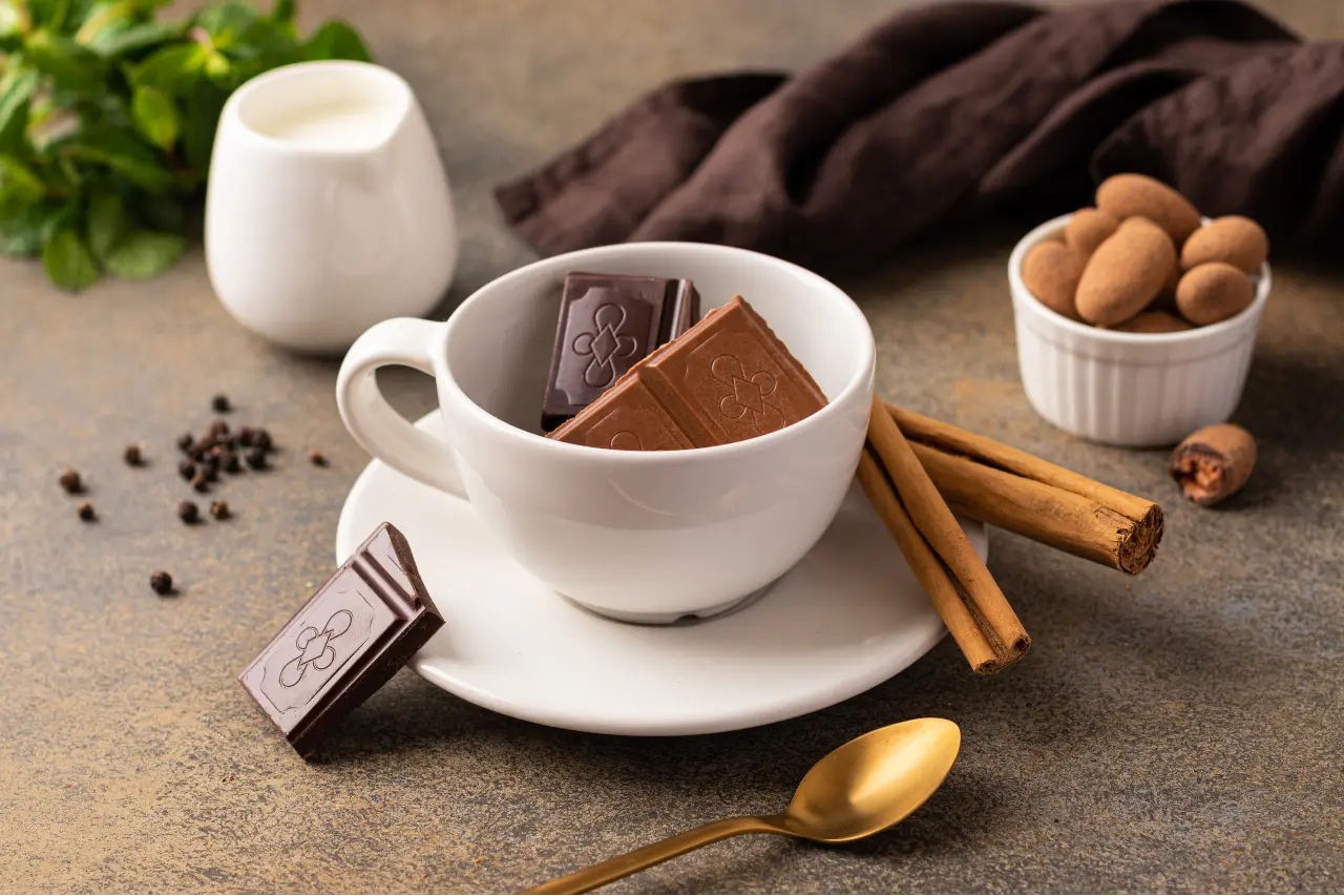 Настоящий горячий шоколад — это вовсе не какао, это именно шоколад, растопленный с молоком или водой. Вариант с молоком или сливками — европейский, более мягкий по вкусу. На родине напитка считают, что молоко и сахар снижают его полезные свойства, зато там щедро добавляют специи. Попробуйте оба варианта и найдите своё любимое сочетание! Технология приготовления в любом случае будет примерно одинаковой.