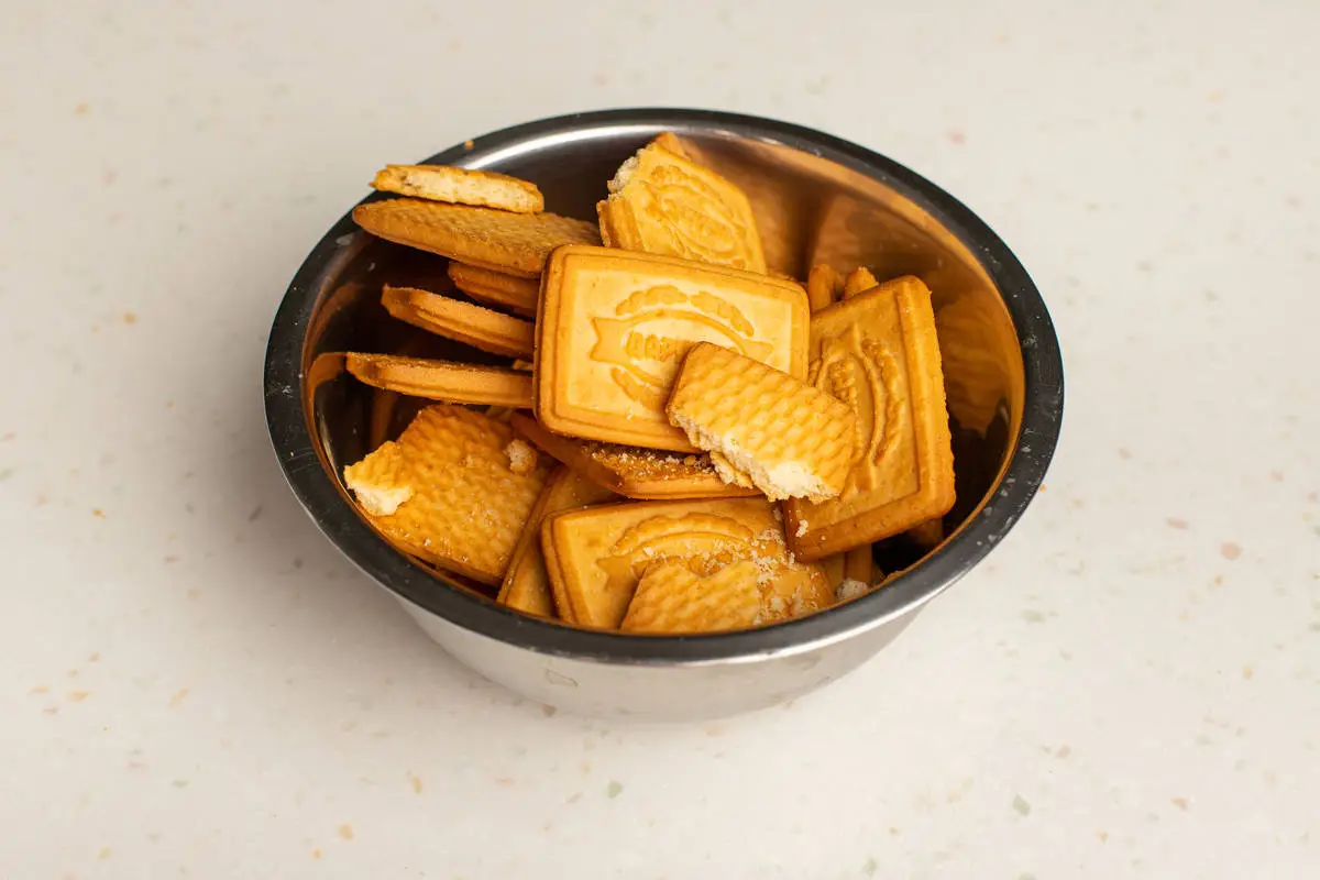 Печенье измельчите скалкой или руками.
