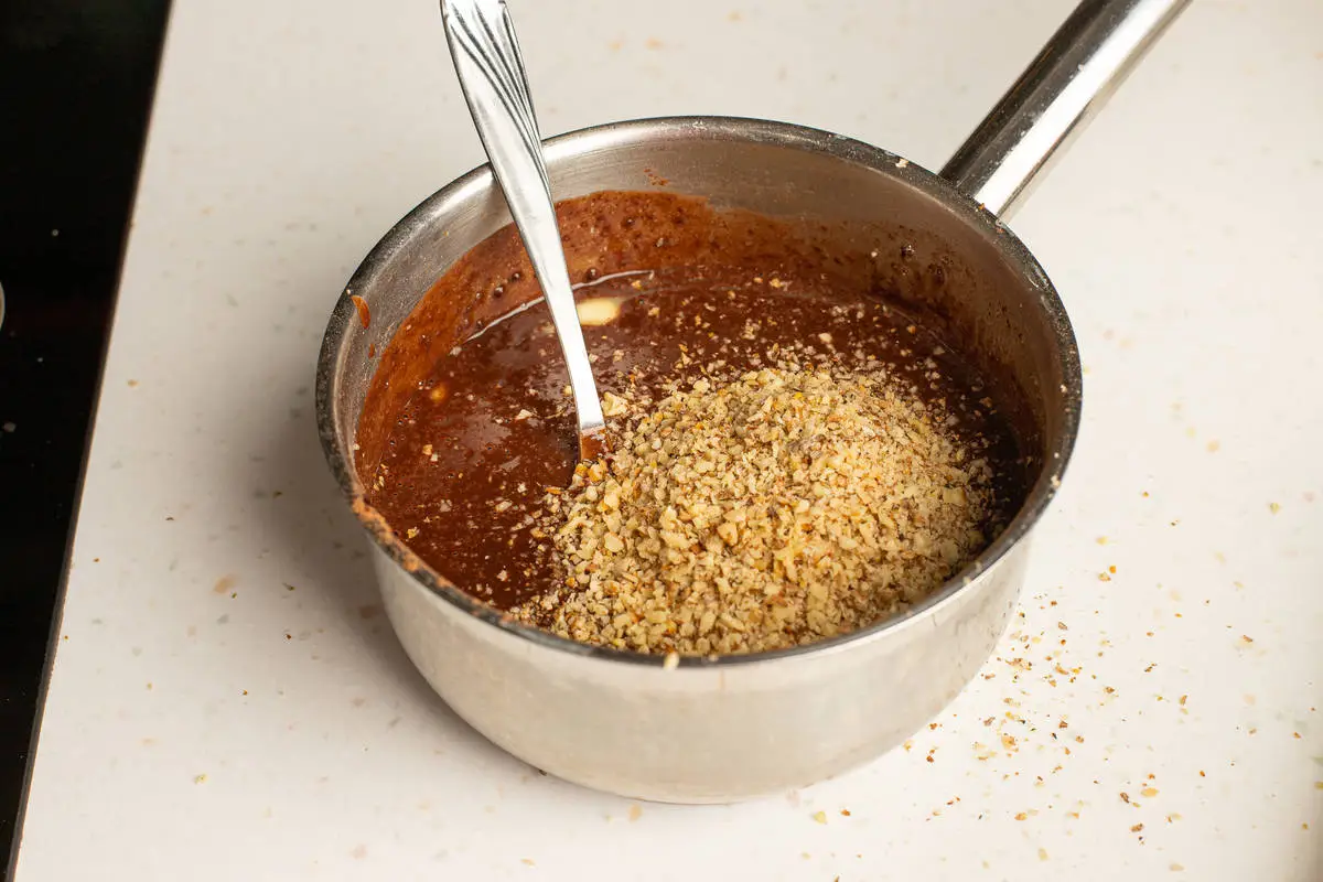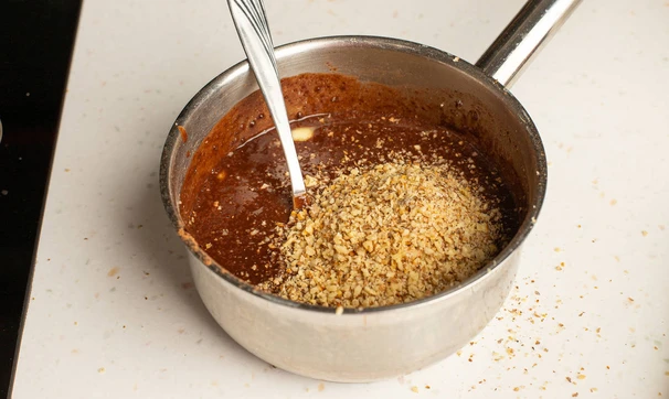 Добавьте орехи и перемешайте.