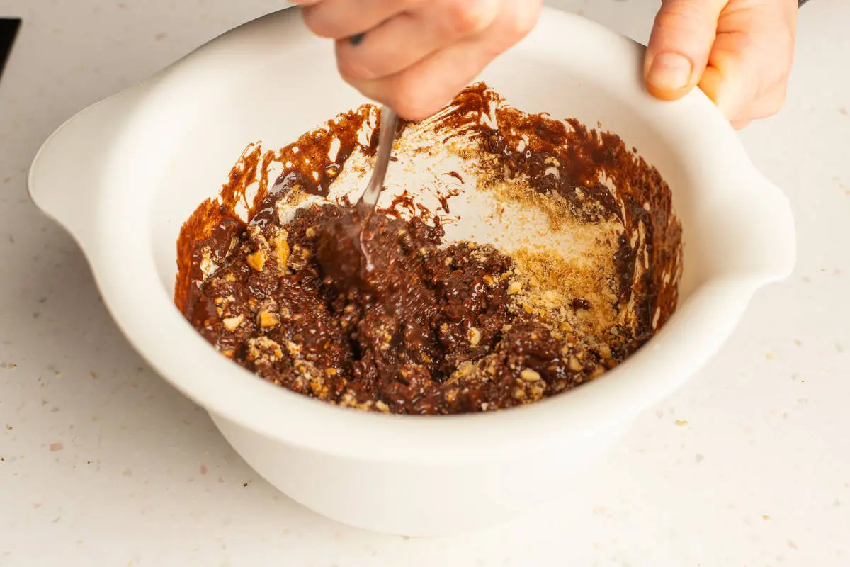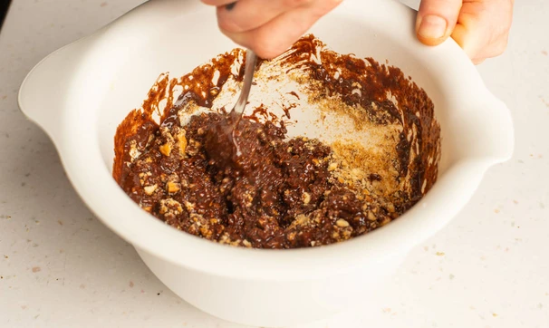 Соедините смесь с печеньем, тщательно перемешайте.