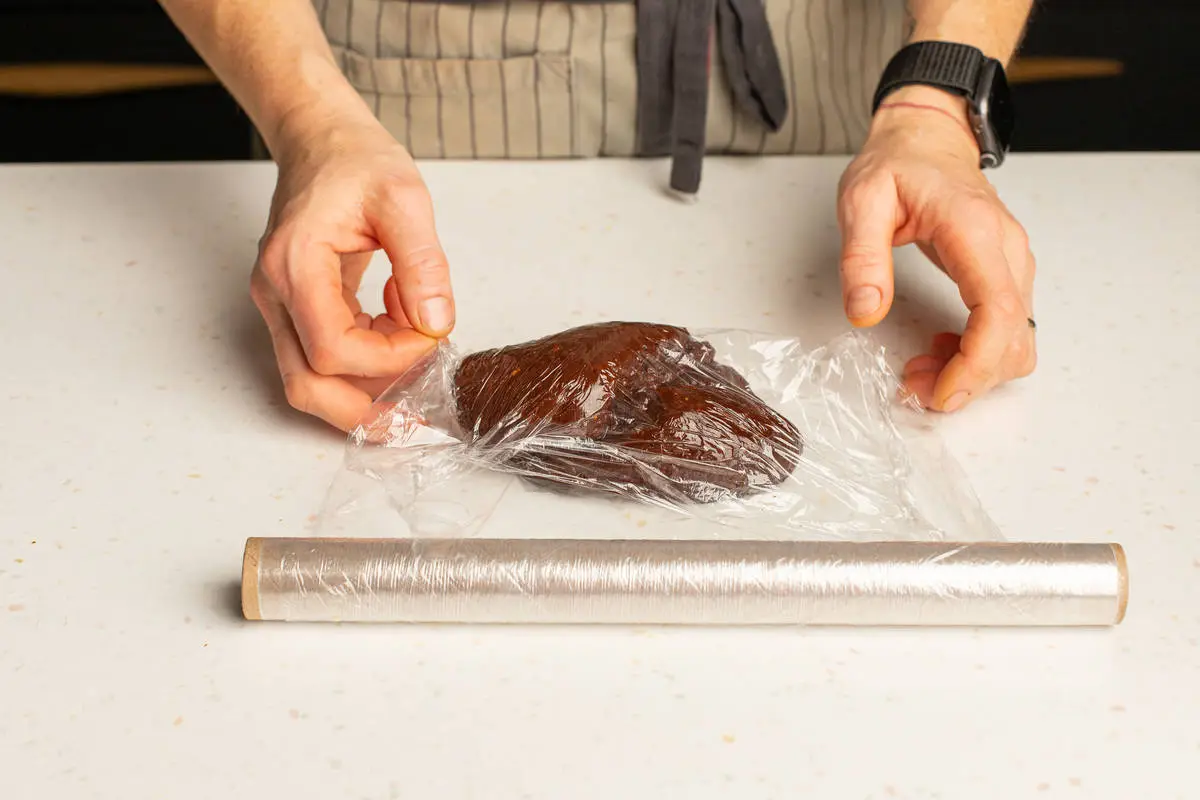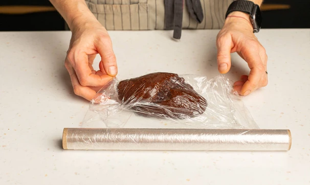 Оберните плёнкой и оставьте в холодильнике для застывания примерно на час.