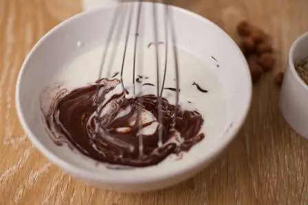 Дайте шоколаду чуть-чуть остыть и смешайте венчиком с йогуртом.