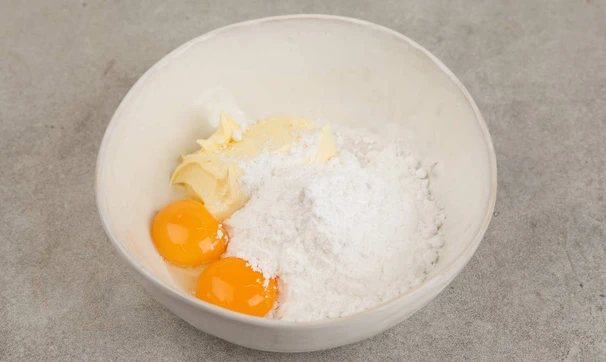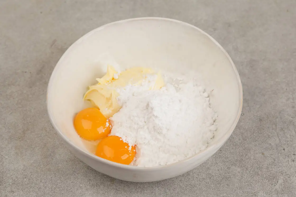 Заранее достаньте масло из холодильника, чтобы оно размягчилось. Смешайте масло с сахарной пудрой и желтками при помощи лопатки, чтобы получился однородный крем.