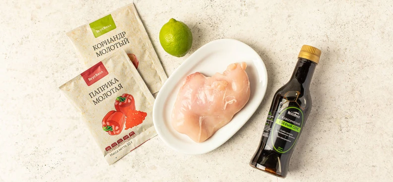 В рецепте используются товары из категорий: Овощи, фрукты, ягоды, зелень; Масла, соусы, специи, сахар и соль; Мясо, птица