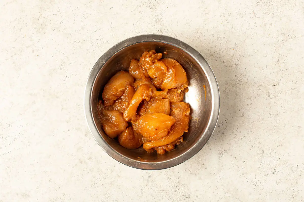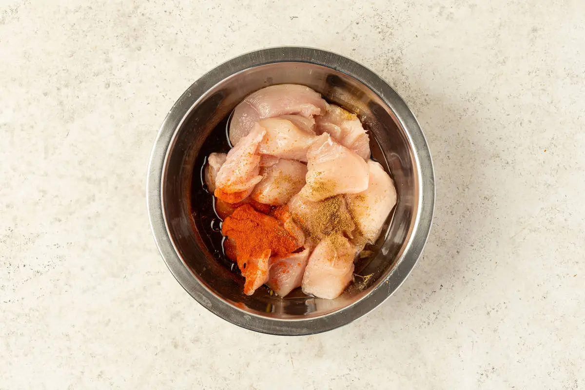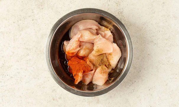 Выдавите сок из половинки лайма, перемешайте и оставьте мариноваться на 10-15 минут при комнатной температуре.