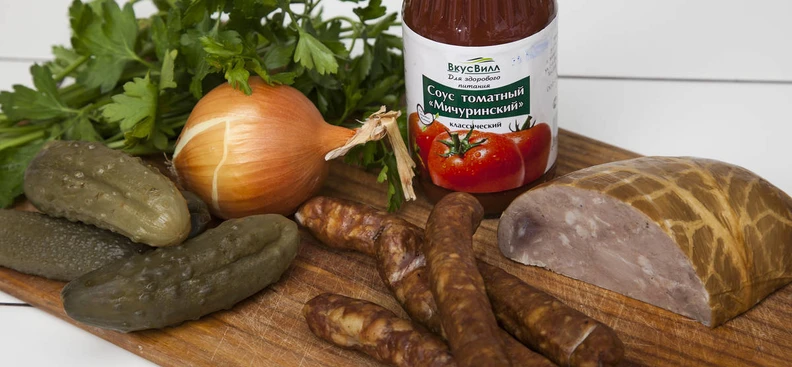В рецепте используются товары из категорий: Масла, соусы, специи, сахар и соль; Молочные продукты, яйцо; Овощи, фрукты, ягоды, зелень; Консервация; Колбаса, сосиски, деликатесы; Здоровье; Мясо, птица