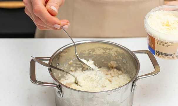 В готовую овсянку добавьте сливочное масло и сыр и перемешайте до однородности и кремовой консистенции. Если пармезан не очень солёный, можно немного подсолить кашу по вкусу.