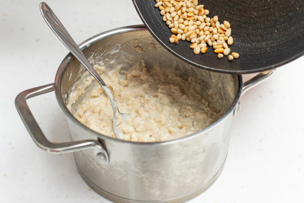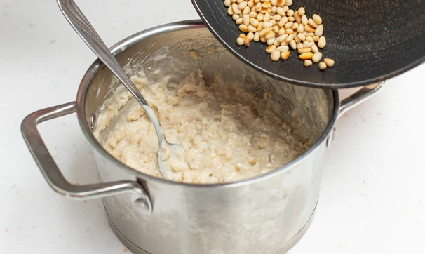 Рецепт «Солёная овсянка с пармезаном и кедровыми орехами»