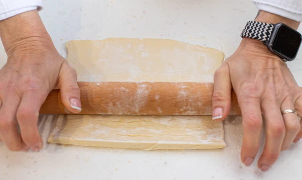 Тесто заранее разморозьте при комнатной температуре или в холодильнике.
