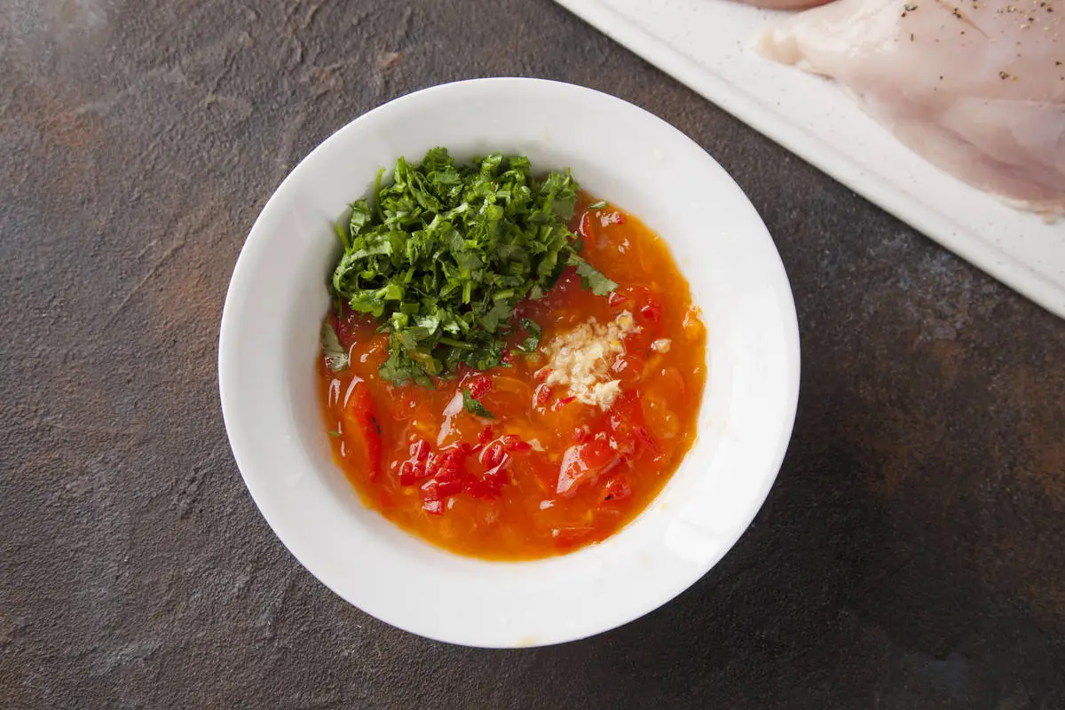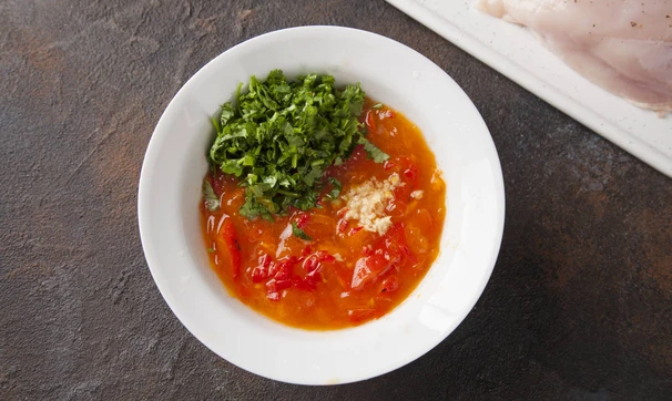 Соус из хурмы и куриное филе в специях