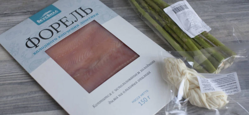 Спаржа в ломтиках форели