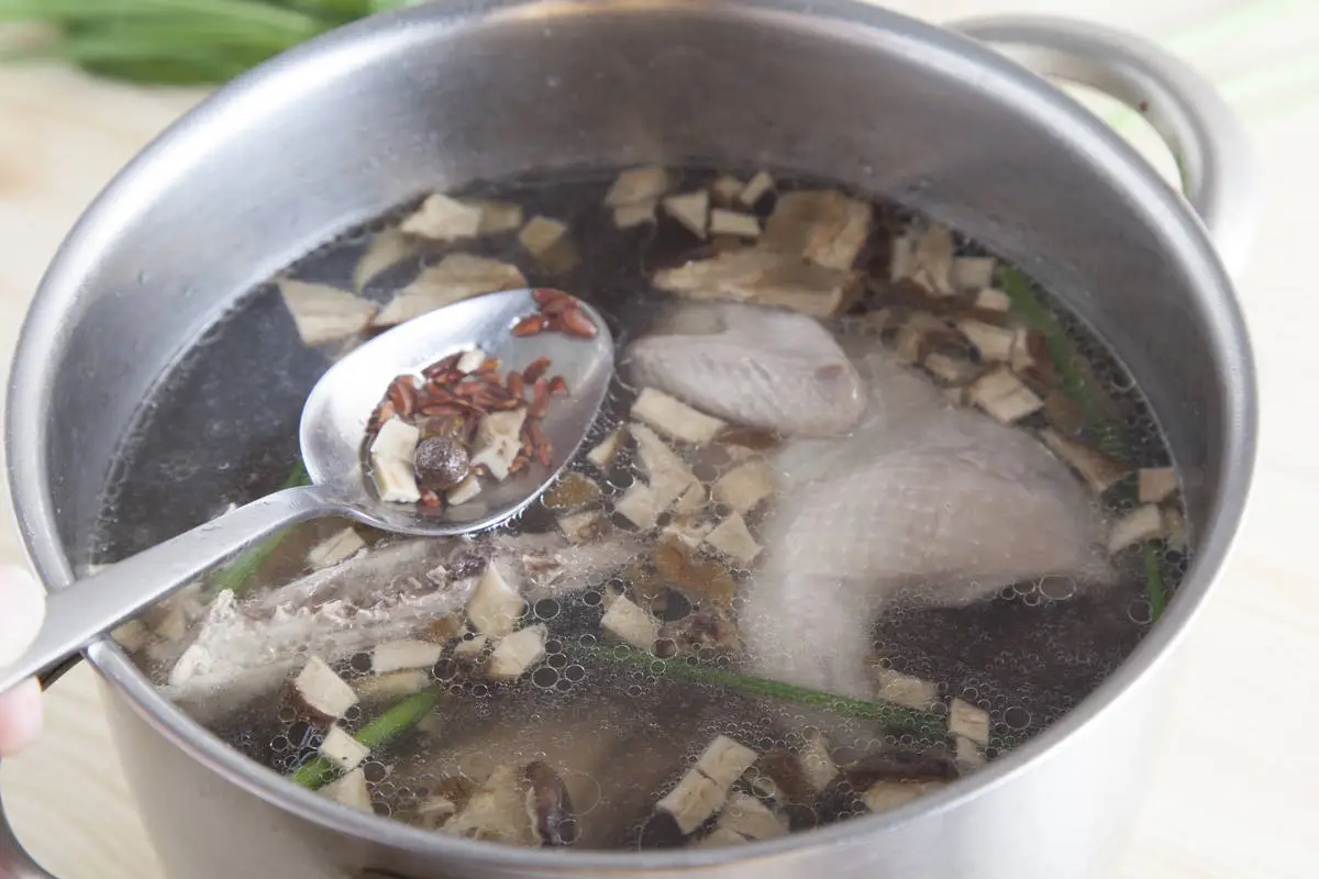 Рецепт «Суп из перепелов с грибами и шпинатом»