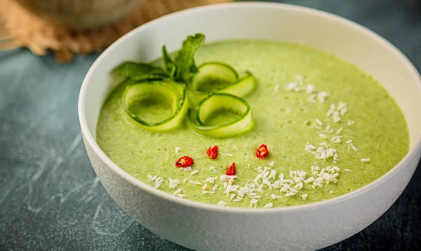 Лёгкий и освежающий холодный суп с экзотическим вкусом, идеально для жаркого лета.