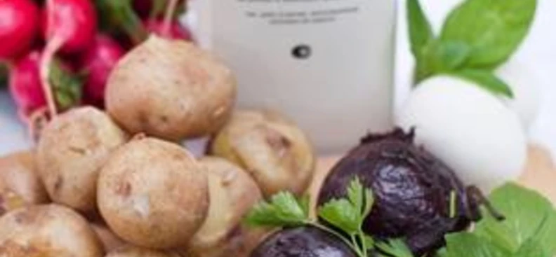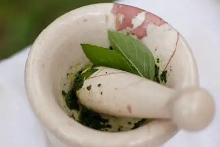 Петрушку и мяту растираем с солью в ступке, добавляем к овощам.
