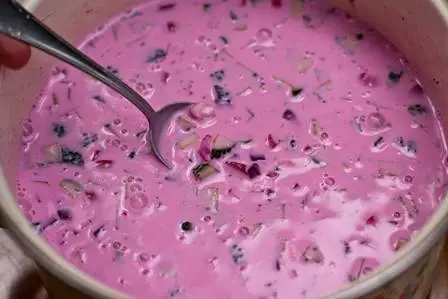 Заливаем все кефиром и добавляем немного воды (100-150 мл) Перемешиваем и можно разливать по тарелкам.