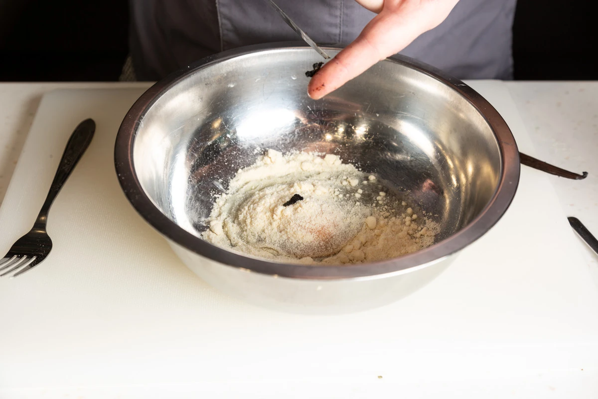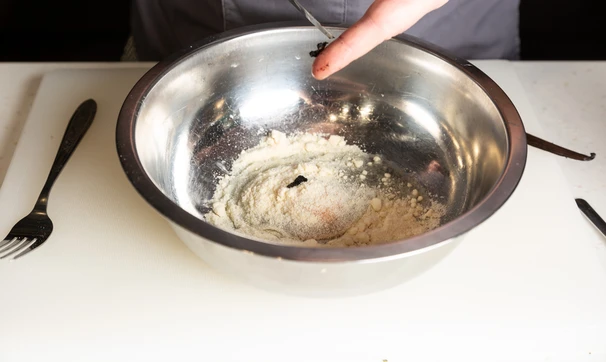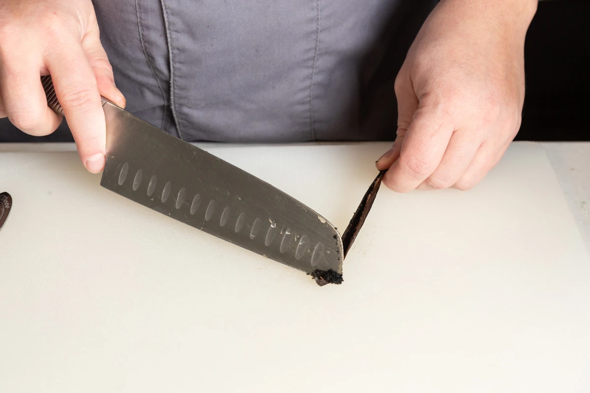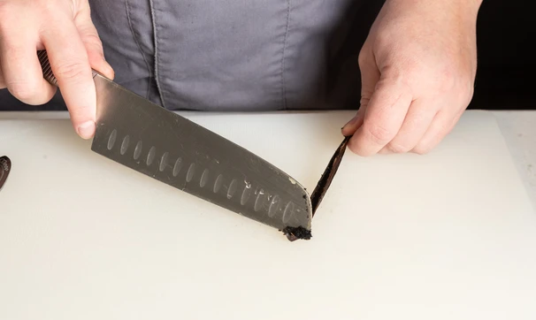 С помощью ножа извлеките мякоть ванили из стручка.