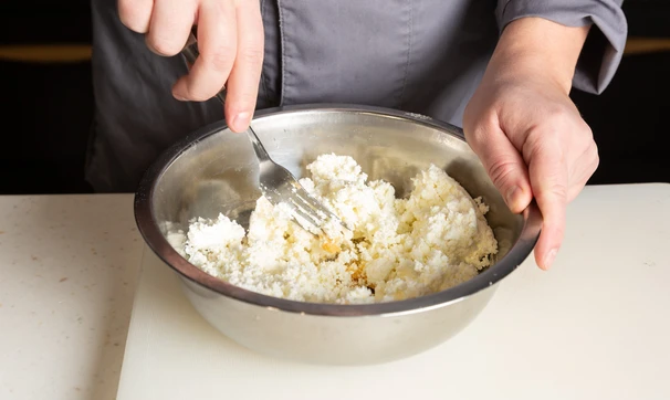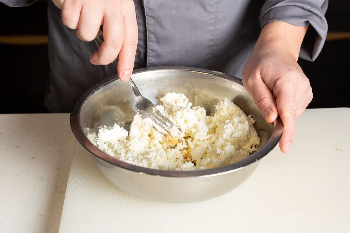 Добавьте творог и замесите тесто.