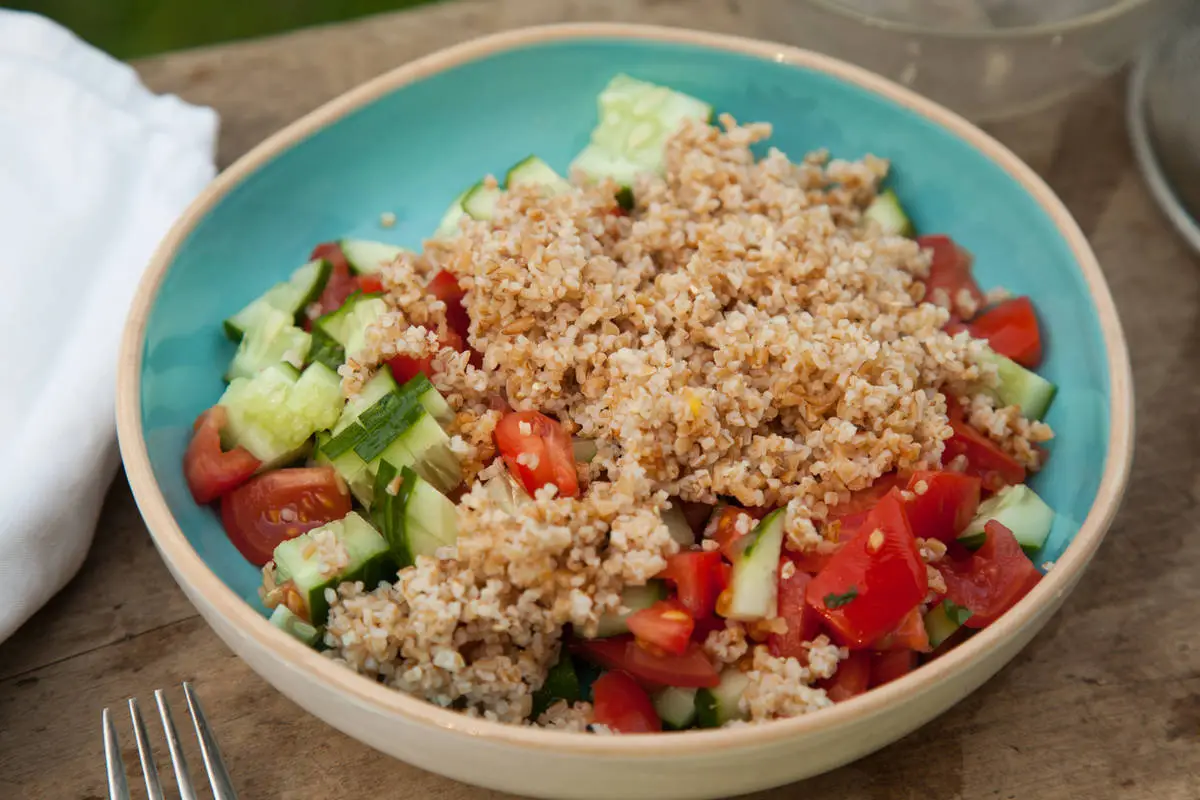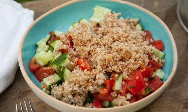 Довольно популярный ближневосточный салат Табуле я попробовала сделать с полбой — и не пожалела! Получилось очень вкусно и необычно, отличный перекус или полноценный обед в жаркий день.