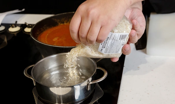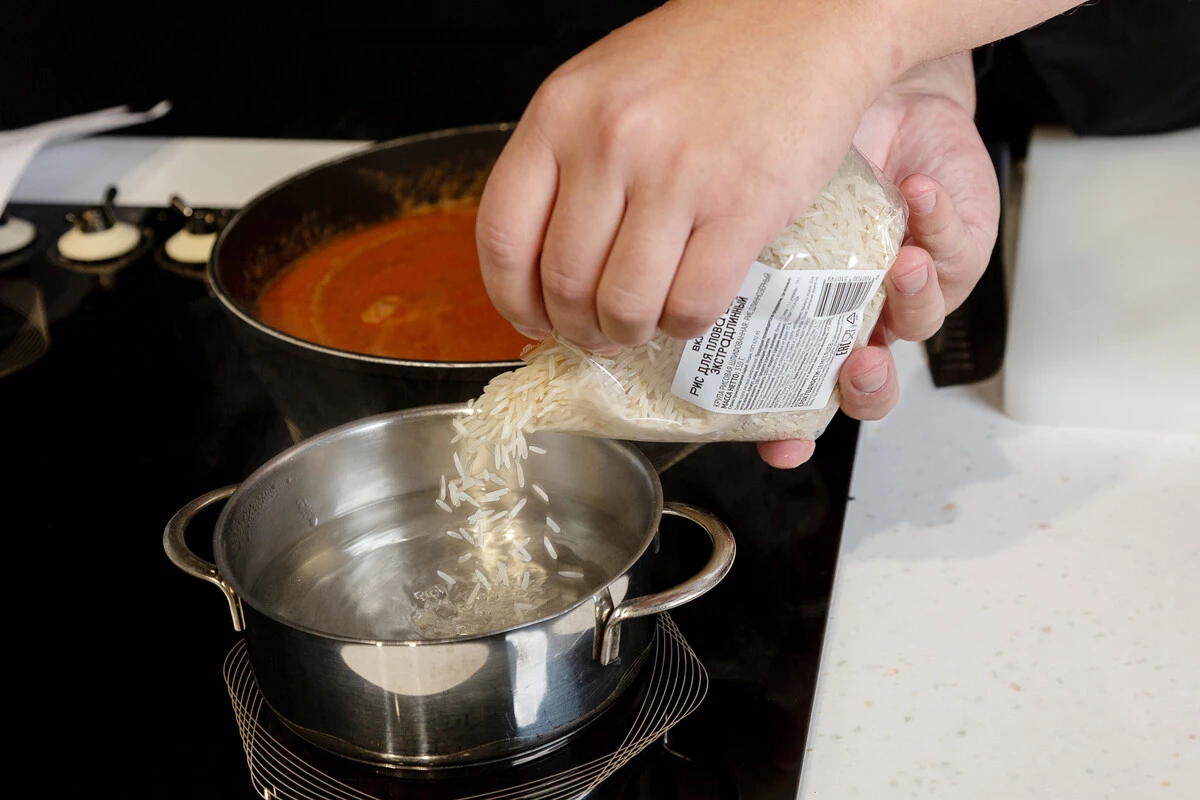 Отварите 70 г риса до готовности. Вам понадобится 180 г варёного риса.