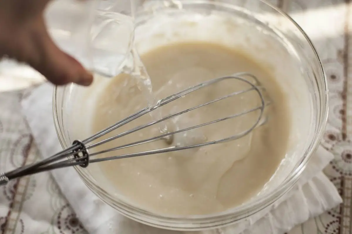 Если тесто получилось густовато, можно добавить еще немного тёплой воды, каждый раз хорошо размешивая.
