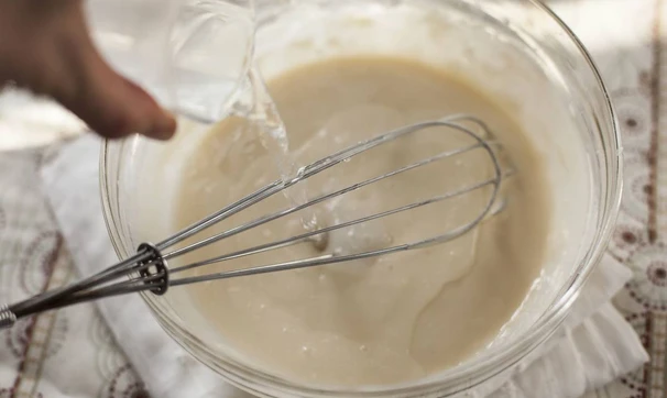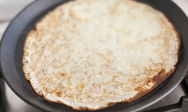 На молоке всегда получаются тонкие блины, а вот на кефире зачастую - только оладушки. Здесь есть маленький секрет — влейте в тесто кипяток! Блины не будут рваться, получатся тоненькими и дырчатыми.
