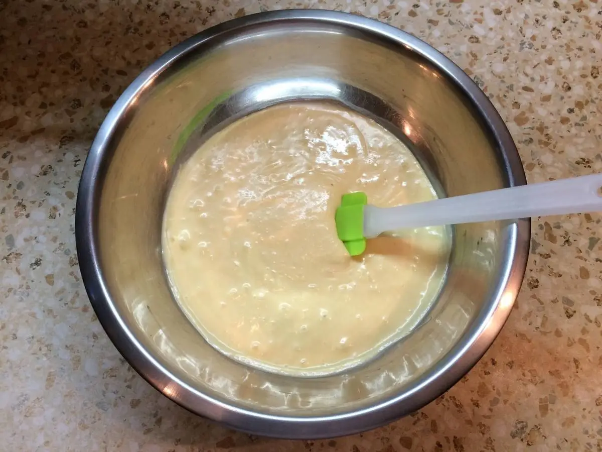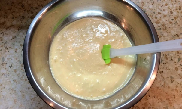 Готовим коржи. Перед тем как готовить, взвесьте тару, в которой будете замешивать тесто. Это понадобится для того, чтобы разделить равномерно тесто на 5 коржей.
